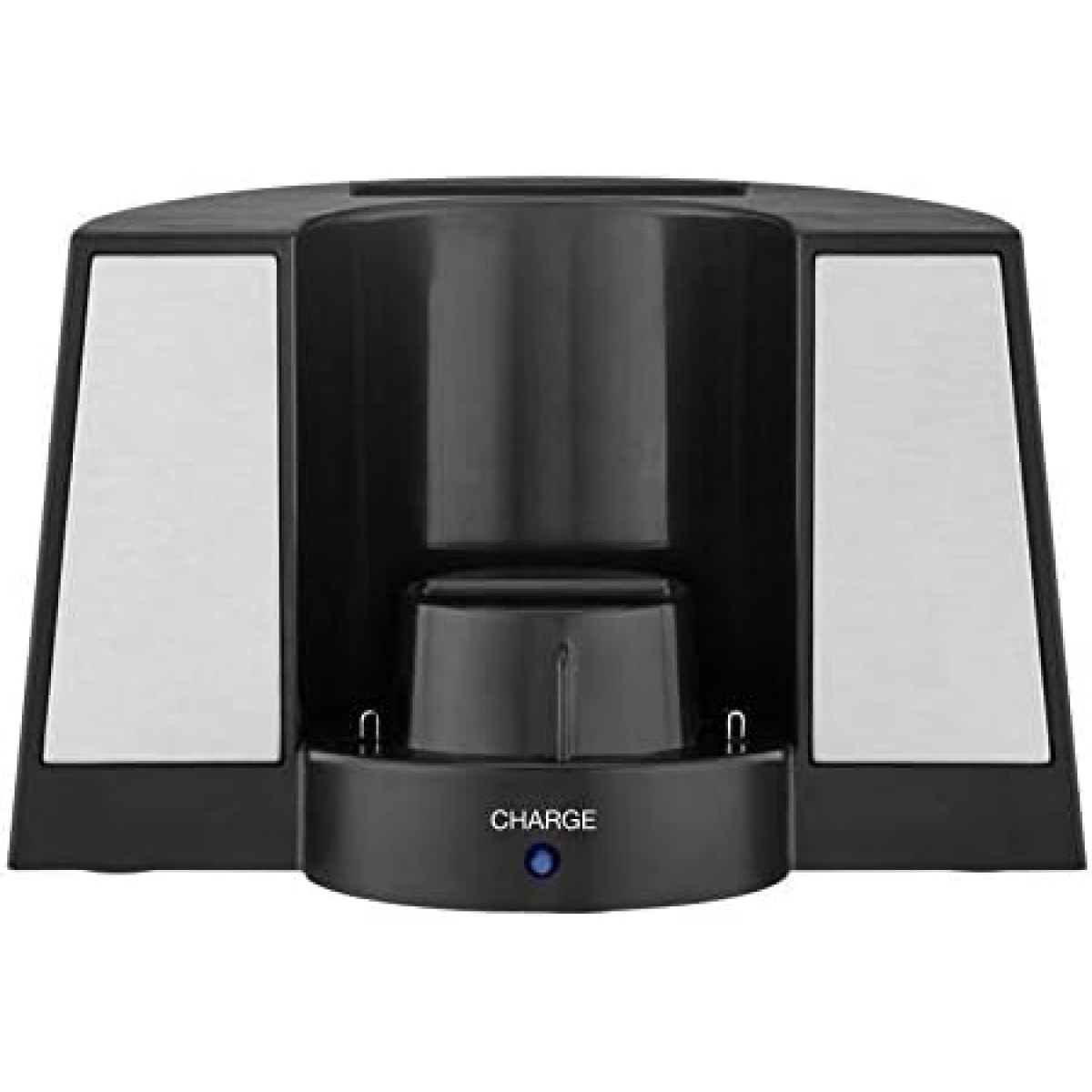 Foil cutter included to neatly trim off foil seals, stores in charging base