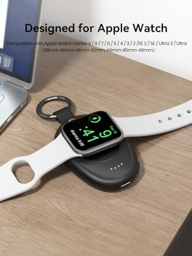 【Charge On the Go】 This wireless charger for Apple Watch boasts a compact and portable design, making it effortless to store and convenient to carry with you wherever you go. Additionally, the inclusion of a keyring allows for easy attachment to your bag or backpack. Perfect for using at home, office, business trips and travels. Package Include: 1* Portable Charger for Apple Watch; 1* USB-C to USB-A Charging Cable; 1* User Manual.
