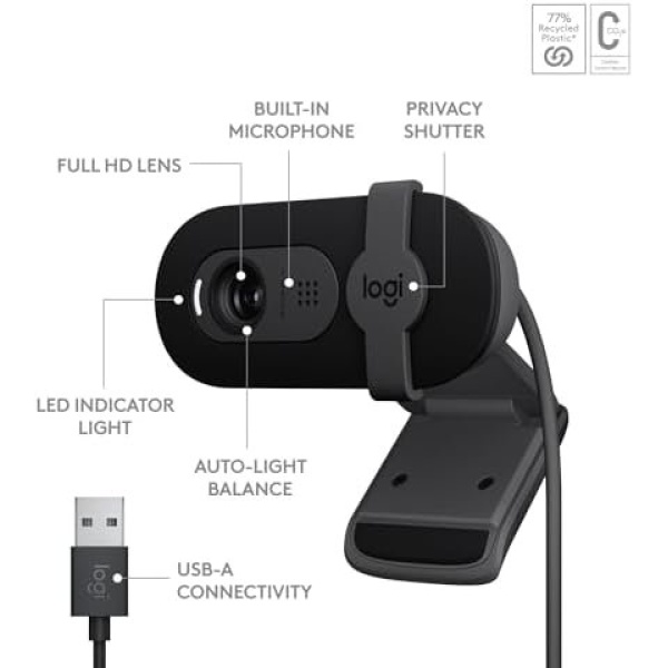 Logitech Brio 101 Full HD 1080p Webcam Made for Meetings and Works
